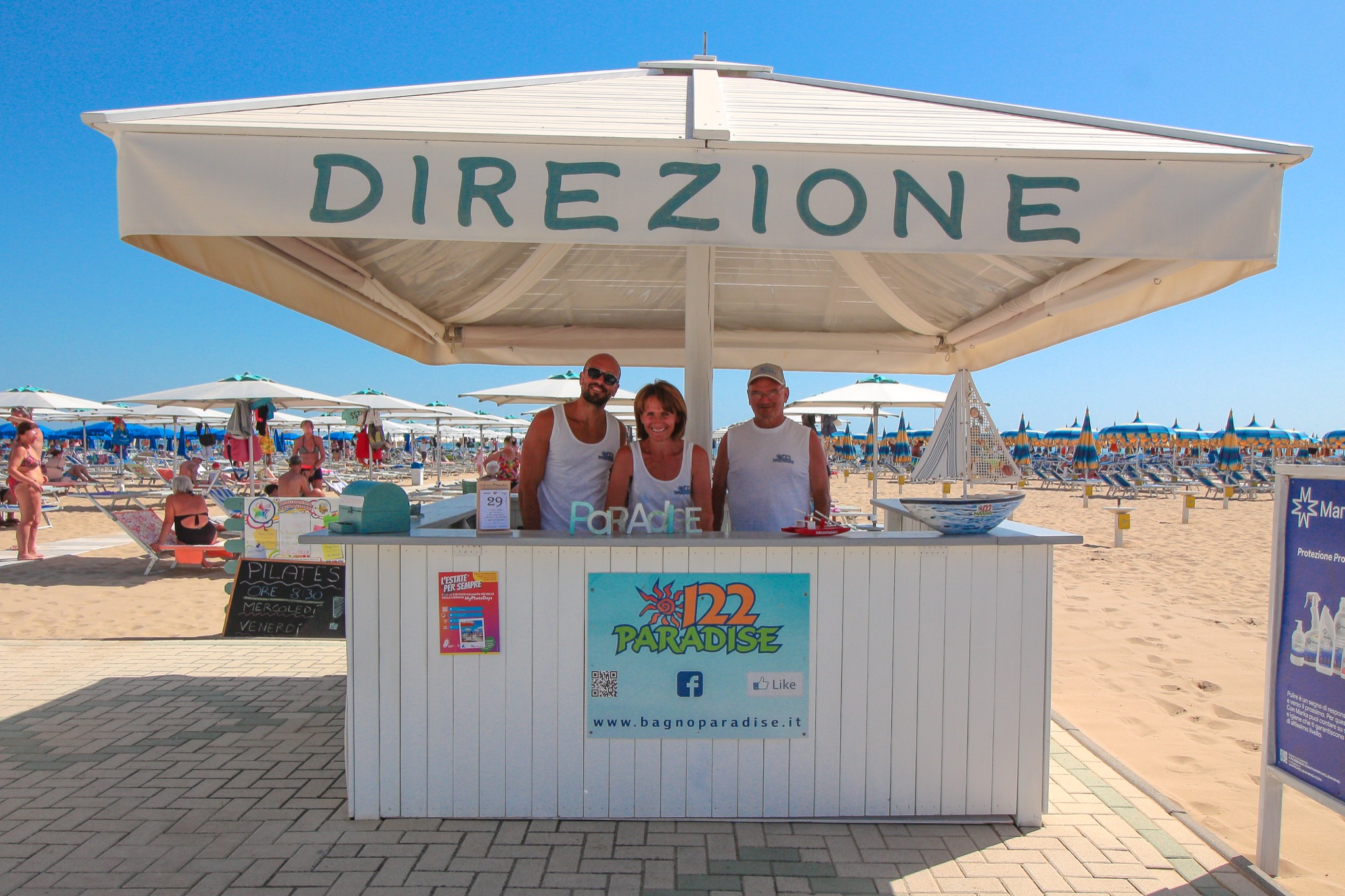 Benvenuti al Bagno Paradiso 122, il paradiso dove trascorrere la tua vacanza a Rimini. Carmen e Denis sono entusiasti di accoglierti e di offrirti un servizio eccellente per rendere la tua permanenza memorabile. Siamo qui per soddisfare ogni tua esigenza e assicurarci che tu possa godere al massimo del sole e del mare